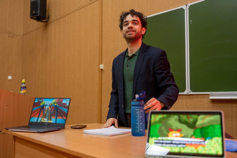 Учебно-игровое русскоязычное пространство содержит широкий спектр образовательного интерактивного мультимедиа контента для индивидуальных и коллективных занятий русским языком в школе и дома. Согласно лингводидактическим задачам, а также содержанию и форме презентации, учебный материал распределён по нескольким разделам: «Игровая площадка», «Школьный двор», «Читальный зал», «Я знаю русский?», «Я учу русский!».