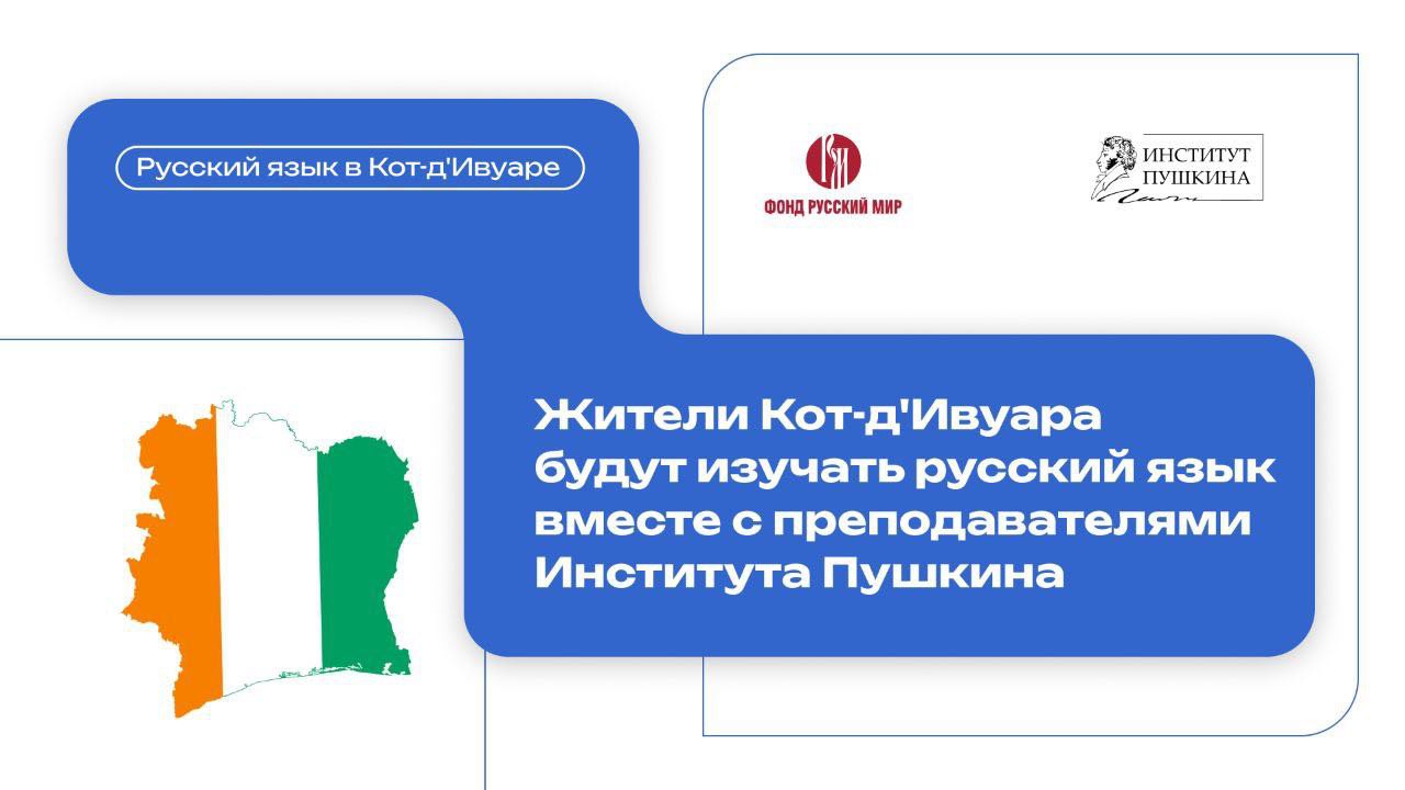 С 11 ноября граждане Кот-д’Ивуара начнут изучать русский язык в рамках проекта «Говорим по-русски». Он реализуется Институтом Пушкина совместно с Ассоциацией Русскоговорящих Граждан в Кот-д’Ивуаре (ARUCI) и при поддержке фонда «Русский мир».