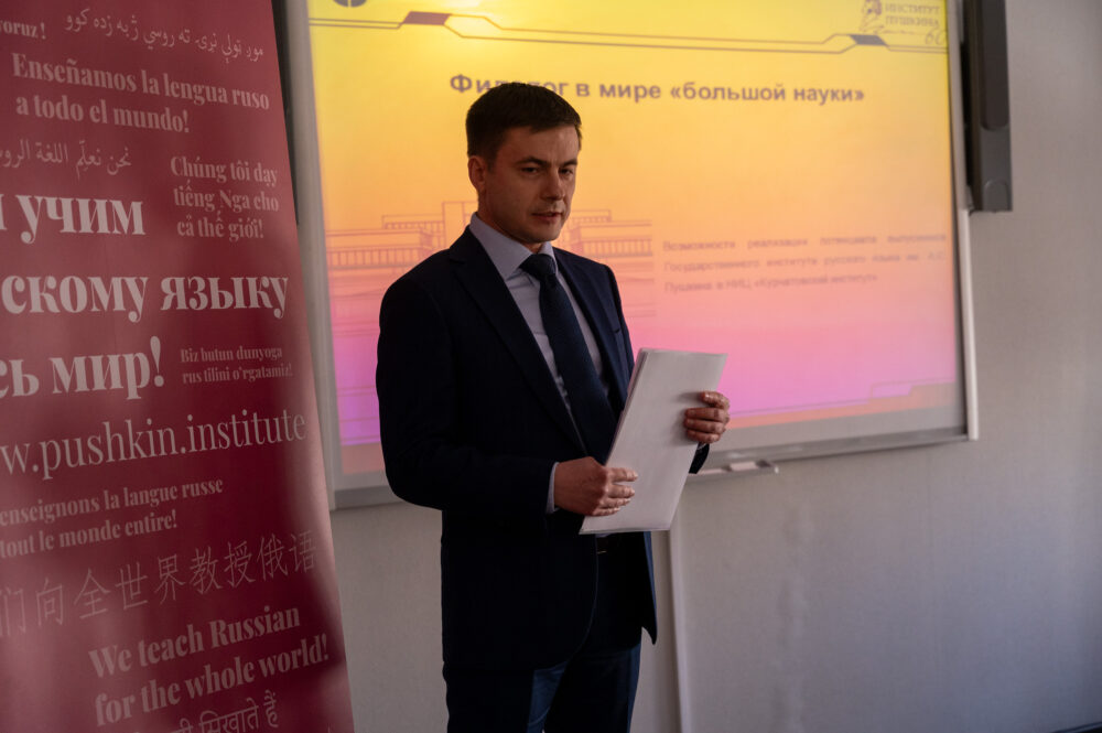 Заместитель директора Департамента проектного управления и перспективного развития Национального исследовательского центра «Курчатовский институт» Роман Левченко познакомил слушателей с деятельностью филолога в мире «большой науки».